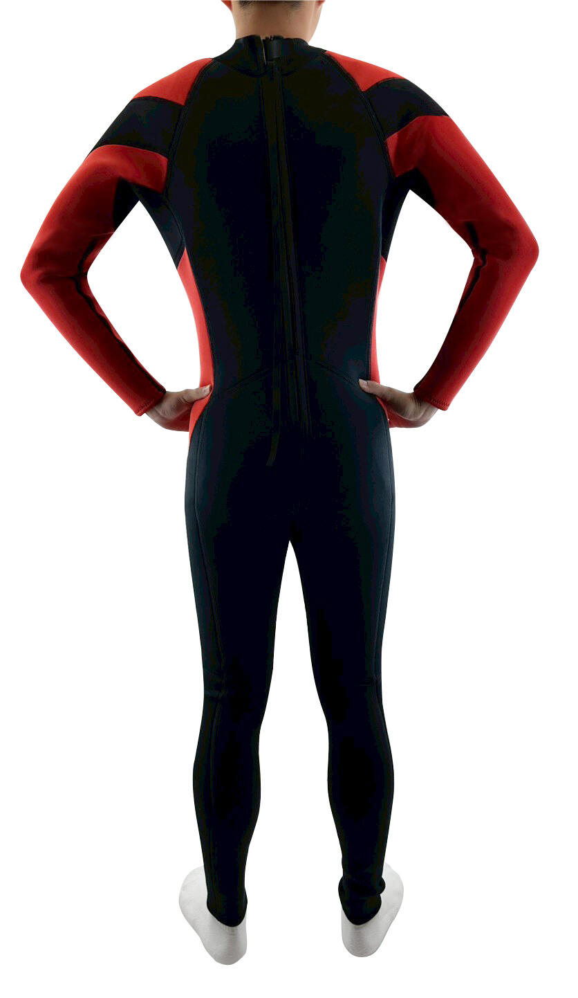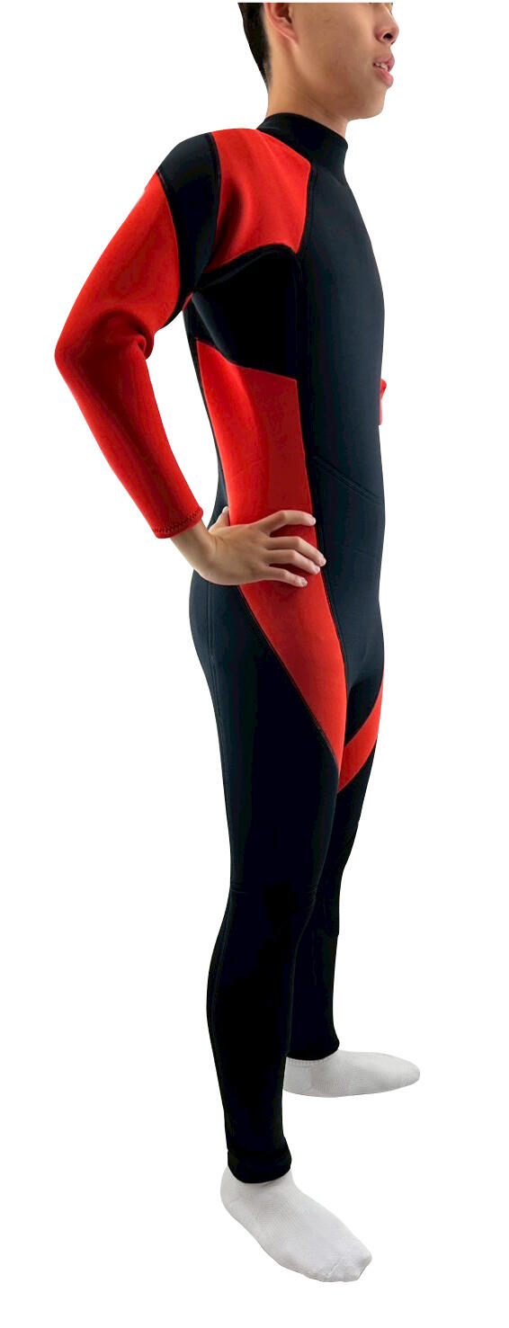 This full-body long-sleeve wetsuit features stretch neoprene and bold magenta paneling with ergonomic seams—offering warmth, protection, and a sleek sporty look, perfect for diving, snorkeling, and water sports.